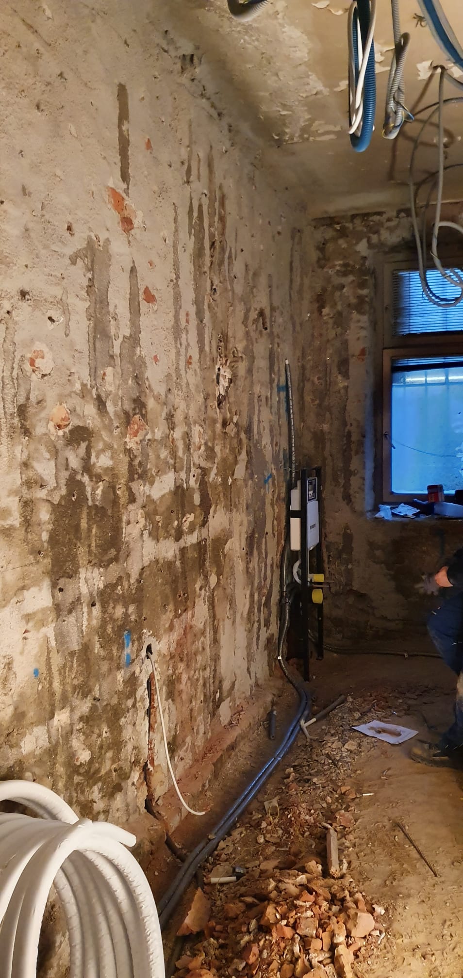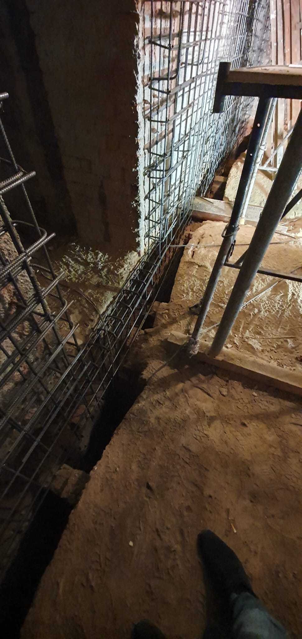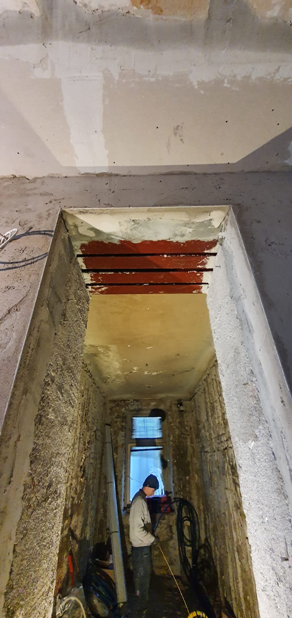 Zur weiteren Stabilisierung des Objekts wurde die Mittelmauer des neuen Geschäftslokals mit einer 20 cm starken Stahlbetonwand verstärkt. Zusätzlich wurden die tragenden Außenwände des Gründerzeithauses mittels Injektionsverfahren nachhaltig stabilisiert.